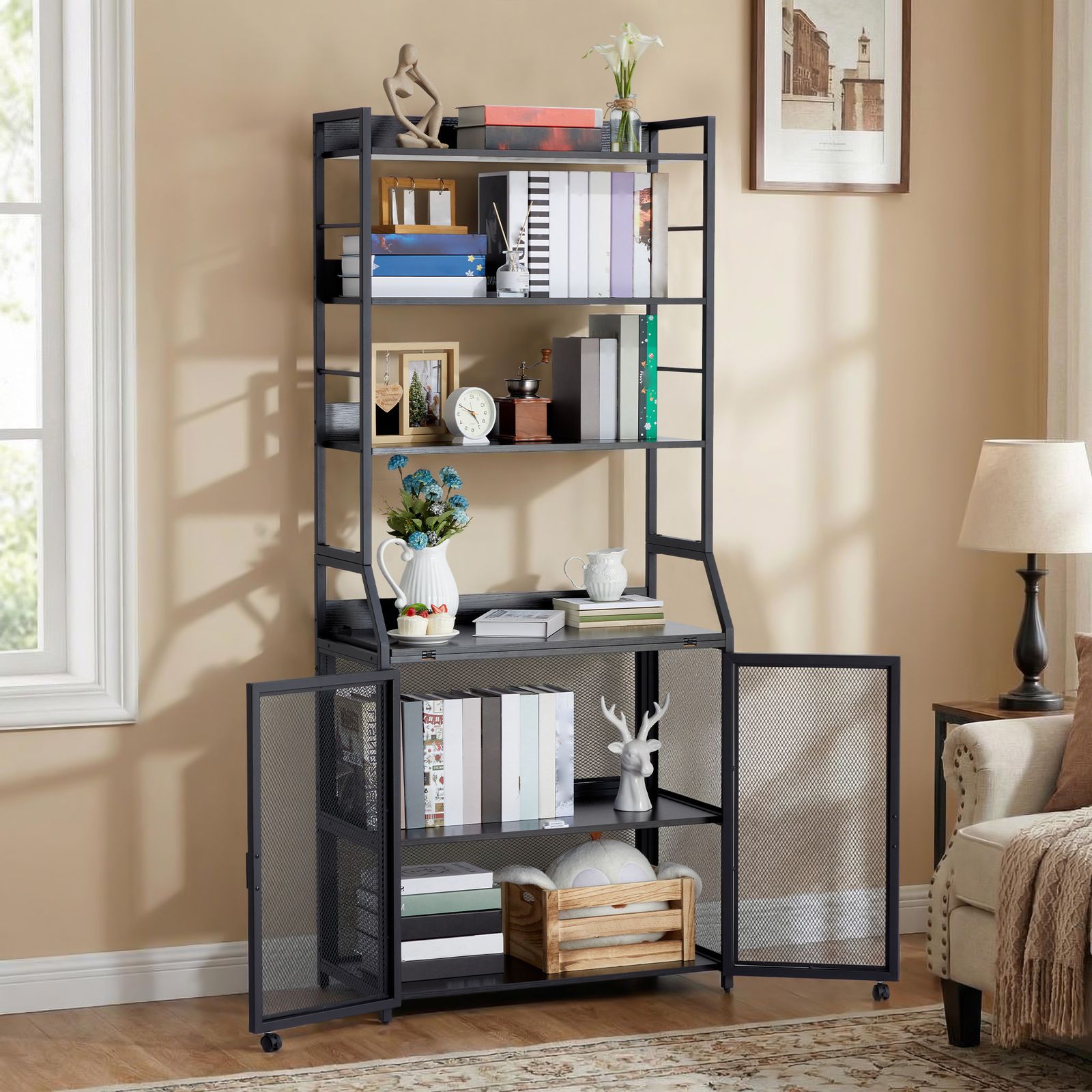 2026 Hall Storage Cabinet, a Space-Efficient 2-In-1 Bookshelf And Writing Desk Featuring a Robust Metal Frame, Surface, And Integrated Storage Shelves